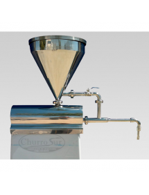 Dosificadora manual de jeringa completamente de acero inoxidable 304 brillante con pistón de empuje de acero inoxidable y polietileno alimentario. Se suministran en medidas de 1 kilo de capacidad y 1,5 kilos. Incorpora boquilla roscada para porras.